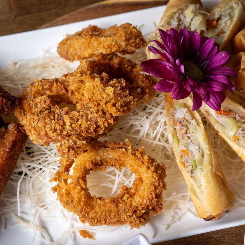 Crispy egg rolls, crispy calamari, crispy shrimp rolls, potato fingers served with sweet chili sauce, cilantro lime aioli.